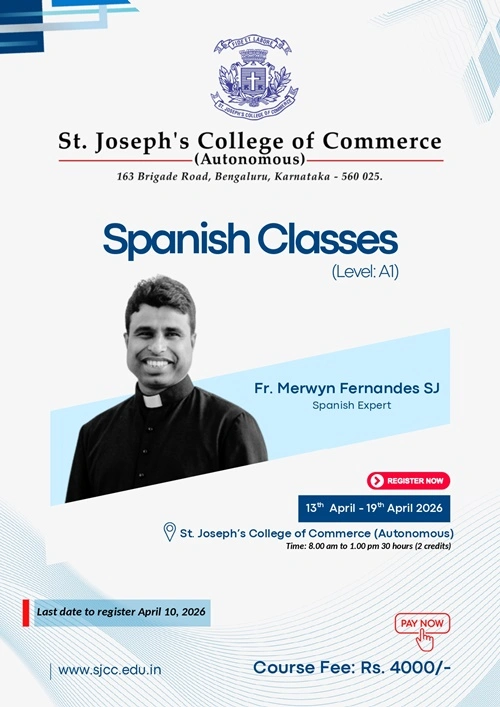 St. Joseph’s College of Commerce (SJCC), formerly a part of St. Joseph’s College, established in the year 1882, is managed by the Bangalore Jesuit Educational Society (BJES). The BJES is a unit of a Catholic religious order called the Society of Jesus founded by St. Ignatius of Loyola in 1540. The Department of Commerce was established at St. Joseph’s College in the year 1949 which later became an independent college with its own building on Brigade road in the year 1972. The college has in its vision a model for higher education which encourages individuals to dream of a socially just world and in its mission a strategy to empower individuals in realising that dream.